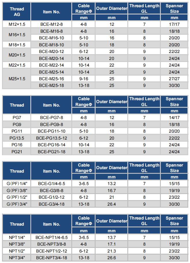 Thread, thread length and cable range can be customized according to customer’s requirements.