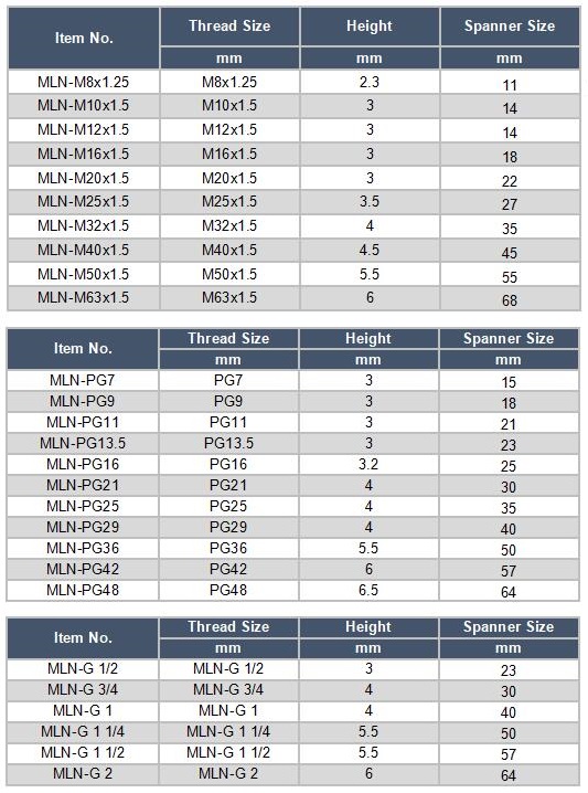 metal locknuts are used to lock a cable gland or a conduit. Our locknuts are made from brass and stainless steel. You will find the standard sizes below. And if you need any other sizes, please feel free to contact us. Any nonstandard sizes can be customized as per customers' requirements.