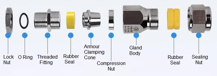 When using an armored cable gland, usually the external threaded end of gland body will be fixed on the explosion-proof box or explosion-proof equipment, the other end of the gland is connected to the armored cable.