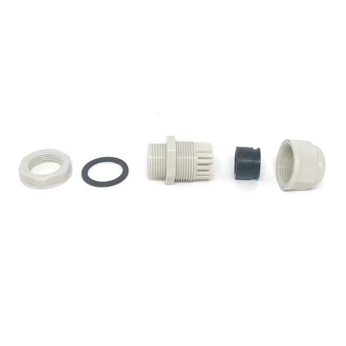Пластиковый кабельный ввод включает в себя контргайку, уплотнительное кольцо, корпус сальника, уплотнение, зажим и уплотнительную гайку. Он водонепроницаем и может достигать класса IP68.
